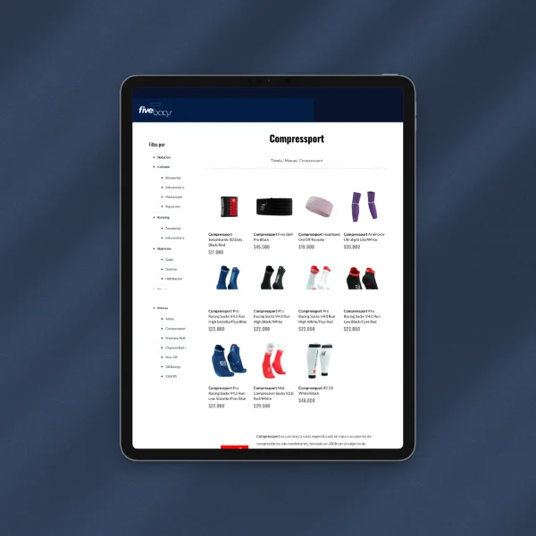 Creamos la tienda de Five Bags con una estructura de categorías clara y funcional que permite a los usuarios encontrar rápidamente lo que buscan.