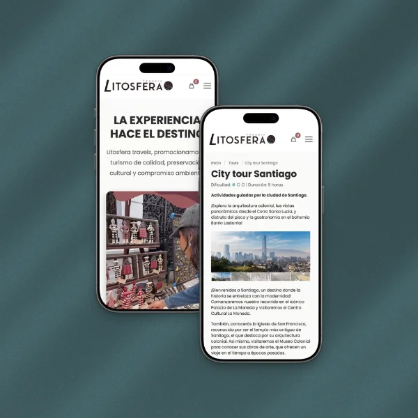Para Litosfera Travels, desarrollamos una tienda online que permite a los viajeros reservar experiencias únicas por Chile, eligiendo entre distintos destinos, niveles de dificultad y duración. Además, los viajeros pueden diseñar su propia experiencia a medida, solicitando un tour personalizado según sus intereses y necesidades.